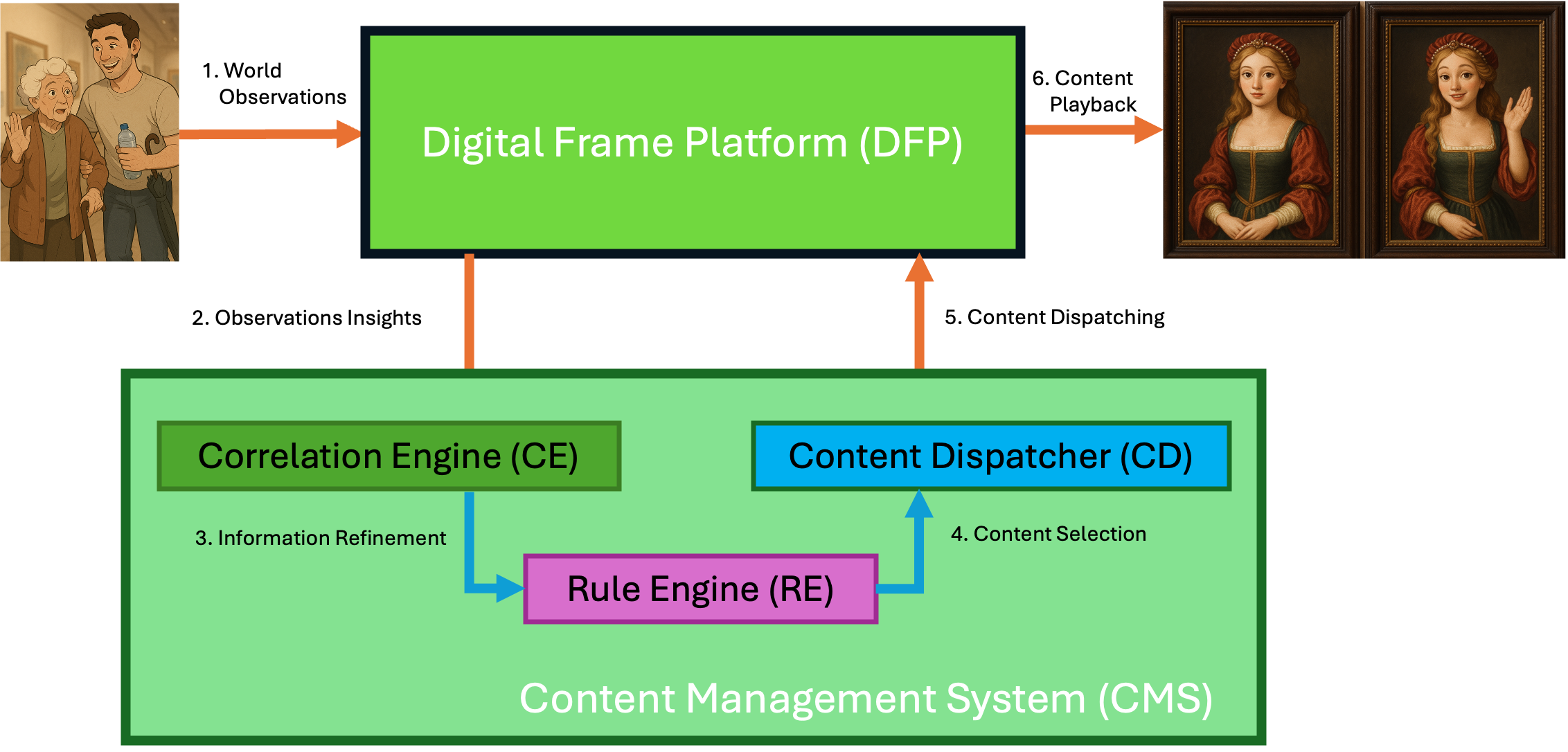The Digital Frame Platform is designed to be highly configurable, allowing customers or third-party integrators to adapt its behavior and content strategies to a wide range of business scenarios.
